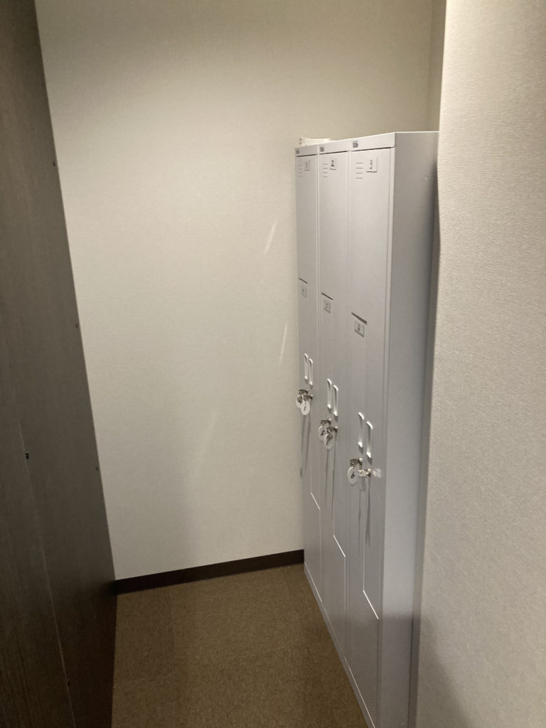 スリムな縦型ロッカーで衣類も収納可。大きなスーツケースなどは自己管理もしくはフロントへお預けください。