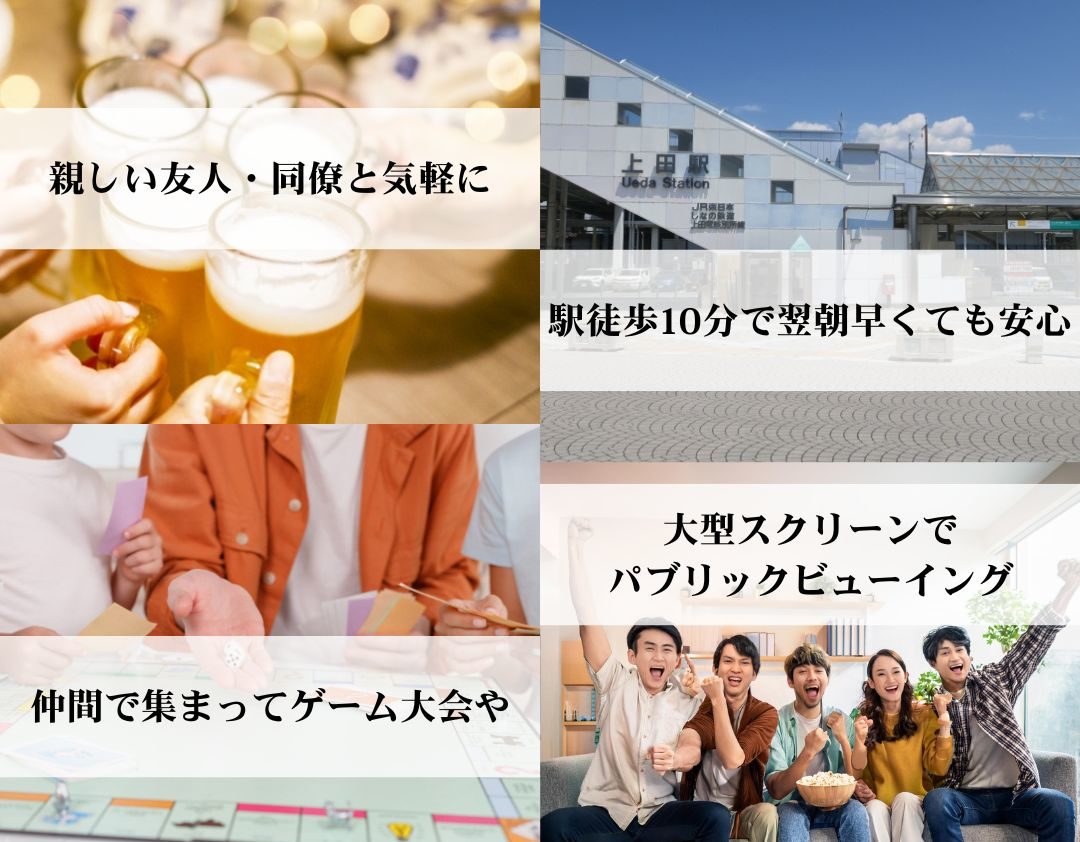 | お食事 | 素泊まりのみとなります。お食事は隣接の信州そば&居酒屋「一貫茶屋」をご利用ください。 |